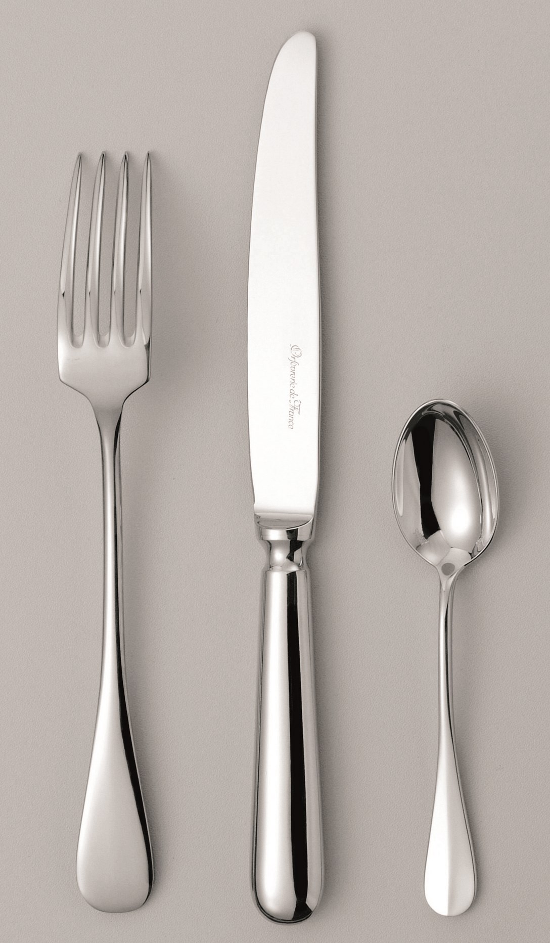 maillechort argenté poinçon carré QUALITE I - 33 microns d'épaisseur - livrée avec housse anti-oxydant composition : 6 fourchettes table - 6 cuillères table - 6 couteaux table - 6 café FARIQUE EN France